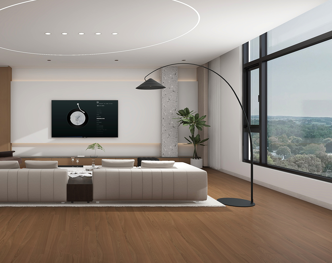 色调为温暖的咖色,纹理自然流畅,仿若将森林中树木的生长脉络精心留存。铺设于空间,能与简约的白色墙面、浅色系家具完美融合,为客厅营造出清新雅致又不失温馨的氛围。