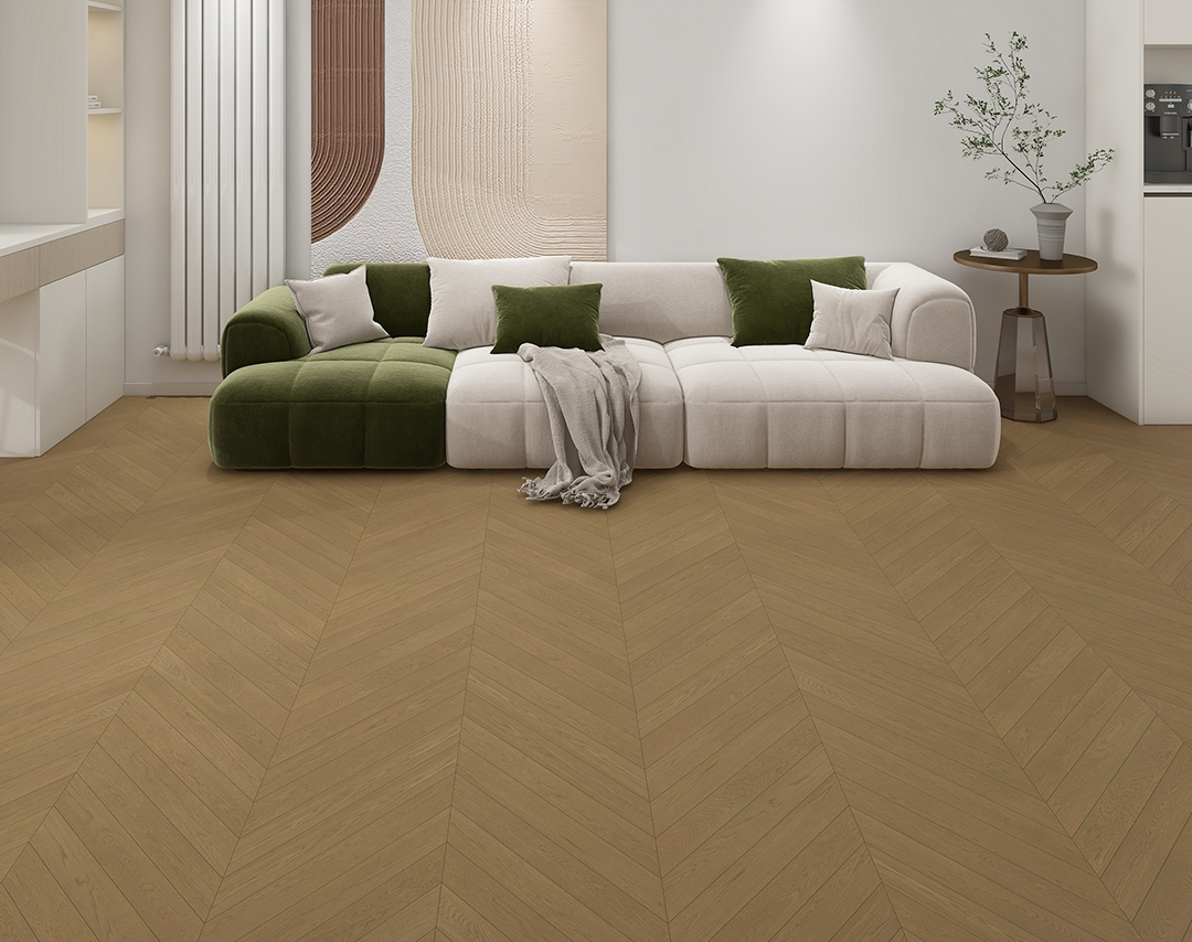 暖黄色调本身就给人温暖、舒适之感,鱼骨纹的排列则增添了一份灵动与活泼,两者结合能让空间充满温馨的家庭氛围,使人感到放松和愉悦 ,增强空间层次感,鱼骨纹的独特拼接方式,使地板呈现出丰富的纹理和线条变化,与暖黄色调相配合,在光影的作用下,能增强空间的层次感和立体感。