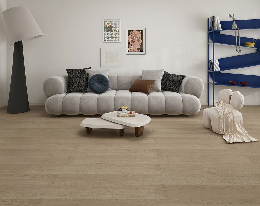 颜色不张扬也不沉闷,它在视觉上给人一种冷静、沉稳的感觉,同时又具有一定的时尚感和现代感,能够很好地融入各种装修风格中,展现出低调高雅的气质,与传统的深色或浅色木地板相比,这一款木地板的颜色更加独特,能够为空间增添一份别样的色彩。