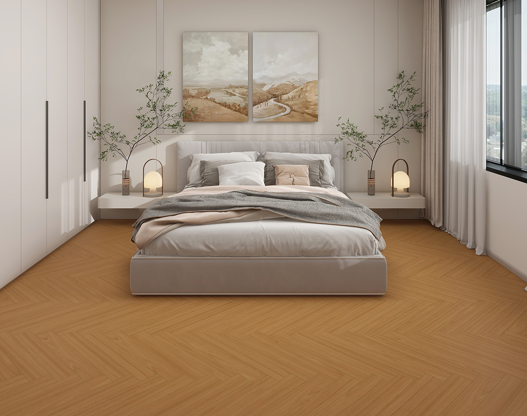 营造出明亮、闪耀的效果,在光线的照射下,地板会显得格外耀眼,为空间增添一份华丽感, 具有浓郁的金属质感,能够为空间带来一种高贵、典雅的氛围,同时,木地板的纹理和质感也会在鎏金处理后更加突出,增加了地板的层次感和立体感。