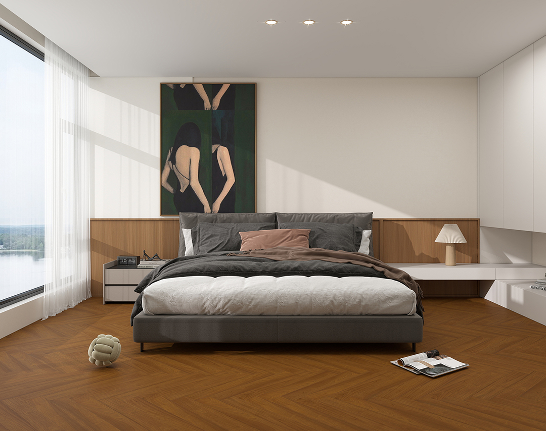 让“大地”成为家的底色,用“人字”拼出家的格调。“大地胡桃”以其沉稳包容的黄棕色,成为各种家居风格的完美基底。而充满复古魅力的“人字拼”工艺,则是空间的视觉焦点,于低调中彰显不凡品味。